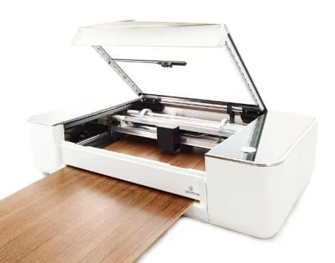 The Glowforge is also outside the range of traditional 3D printing. Although the company calls it a 3D laser printer, it doesn’t use extrusion technology to build up objects in layers. It’s more accurately described as a laser cutter, which means it too uses concentrated light beams to etch designs into a number of materials.
